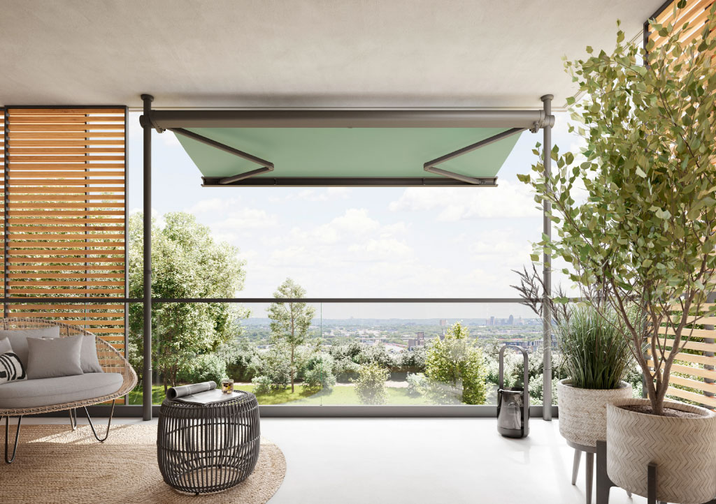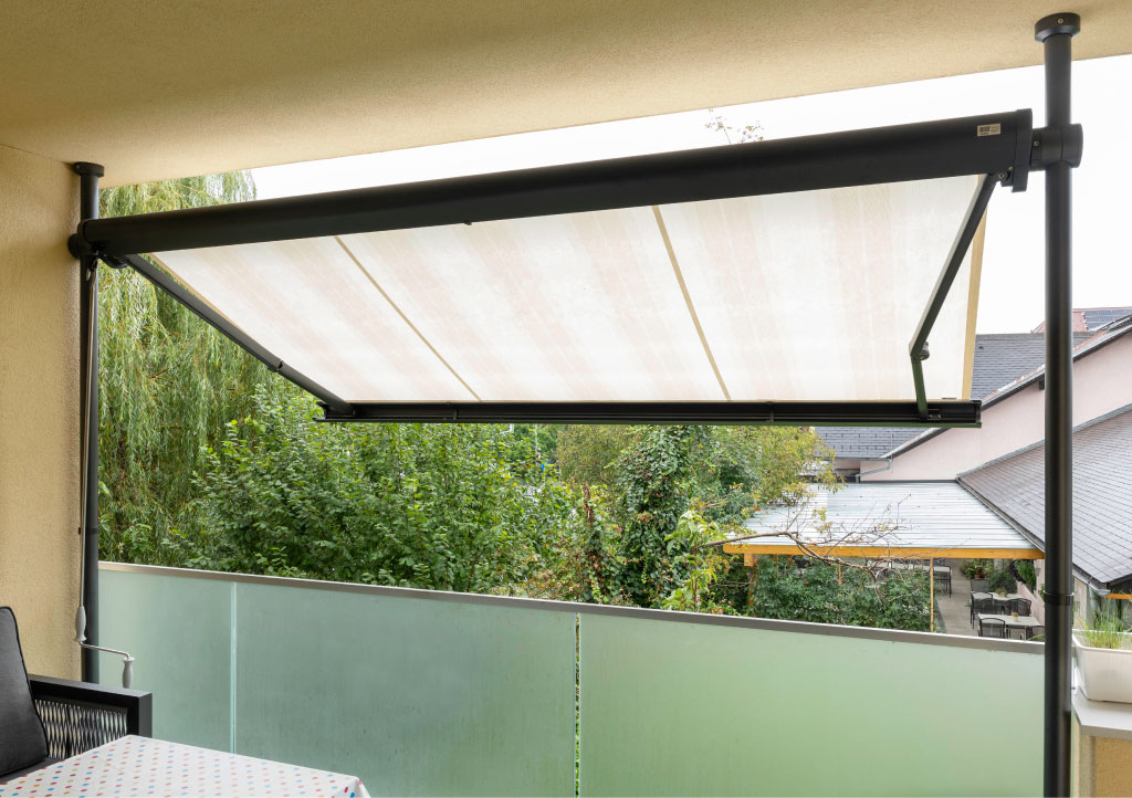The markilux 900 clamp awning is a smart, elegant shading solution designed especially for balconies. Its innovative clamp-mounted system makes it ideal for rented and owner-occupied flats, offering secure installation with minimal structural intervention while still delivering the premium look and performance you would expect from a markilux awning.