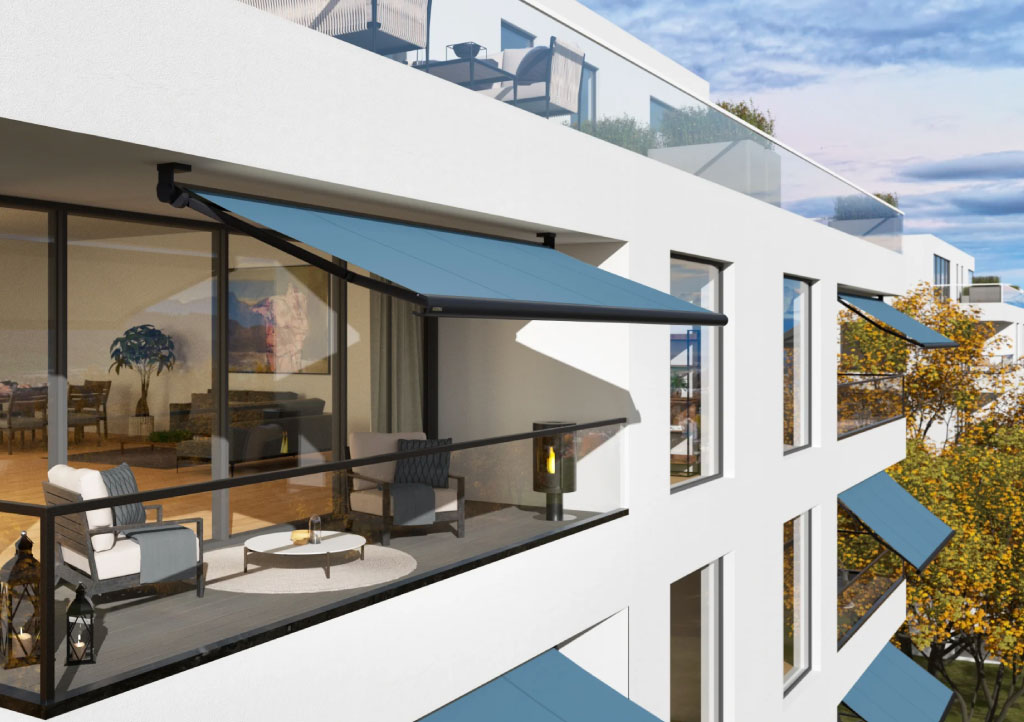 If you are looking for a balcony awning that is mounted using clamping posts rather than fixed brackets, take a look at the markilux 900 Clamp, which offers the same refined styling in a clamp-mounted format designed especially for balcony settings. Markilux presents that model as the clamping-pillar alternative to the 900 Fix.